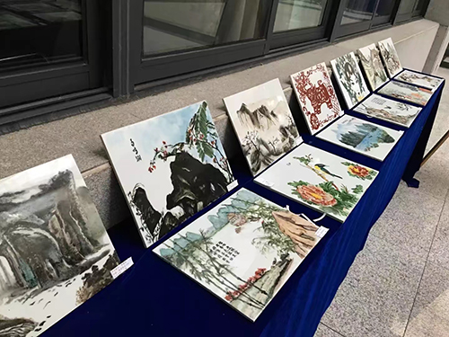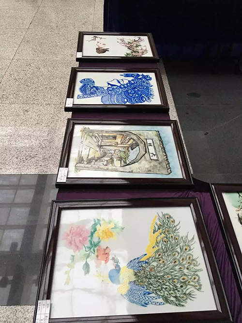 此次展出的作品种类多样、制作精美。既有匠心独运、合理布局的充满古韵的山水画、花鸟画,也有轮廓清晰、线形协调且传神达意的具有现代感的人物形象,跃然于瓷板上。