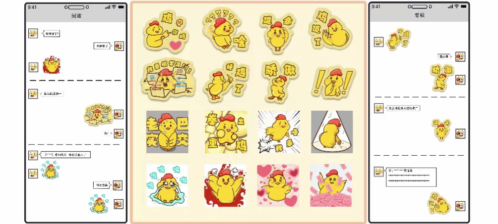 作品以优设鸡的萌萌日常表情包结合原有设计的IP形象进行的延伸,结合IP本身的性格特点与日常社交生结合,通过表情包将纸面上的性格特点活化,紧随时代,让优设鸡的IP形象更加贴合生活更富有生活气息。