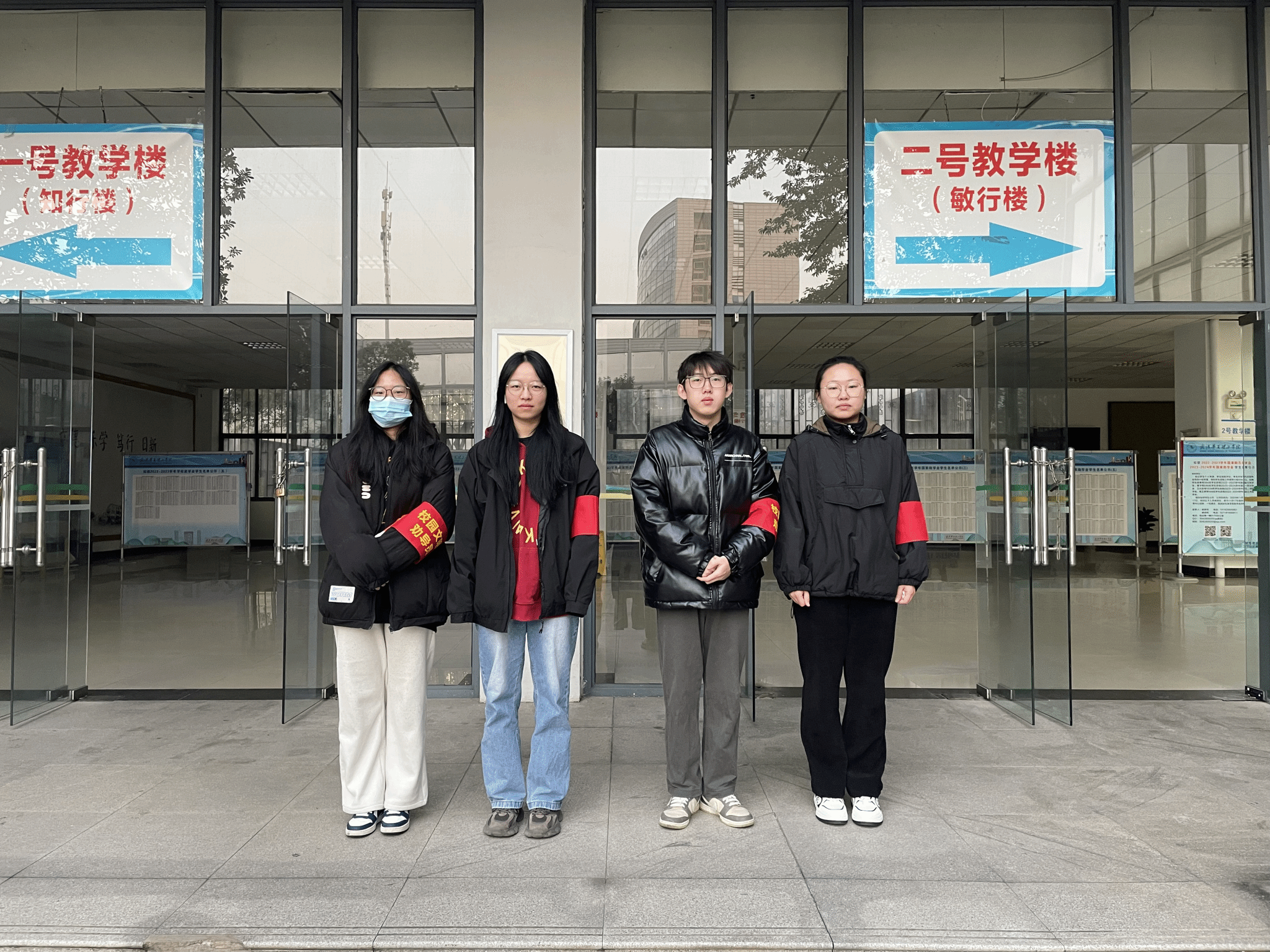 为了加强校园管理,积极推行“三风”建设工作,形成师生和谐、同学和睦、蔚然成风的良好学习氛围。2023年11月14日早上,我院党员工作服务站的成员在教学楼开展执勤活动,做好“文明劝导员”工作。