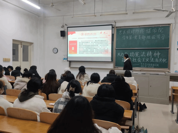 为深入学习贯彻习近平法治思想,深入宣传宪法精神,建设社会主义法治文化。12月7日,艺术设计与传媒学院学生第一党支部在教学楼1-102开展了“大力弘扬宪法精神,建设社会主义法治文化”主题党日活动,参加本次会议的有我院学生第一党支部书记惠铃、支委葛占洪老师、张浩琦老师,以及学生第一党支部全体成员。