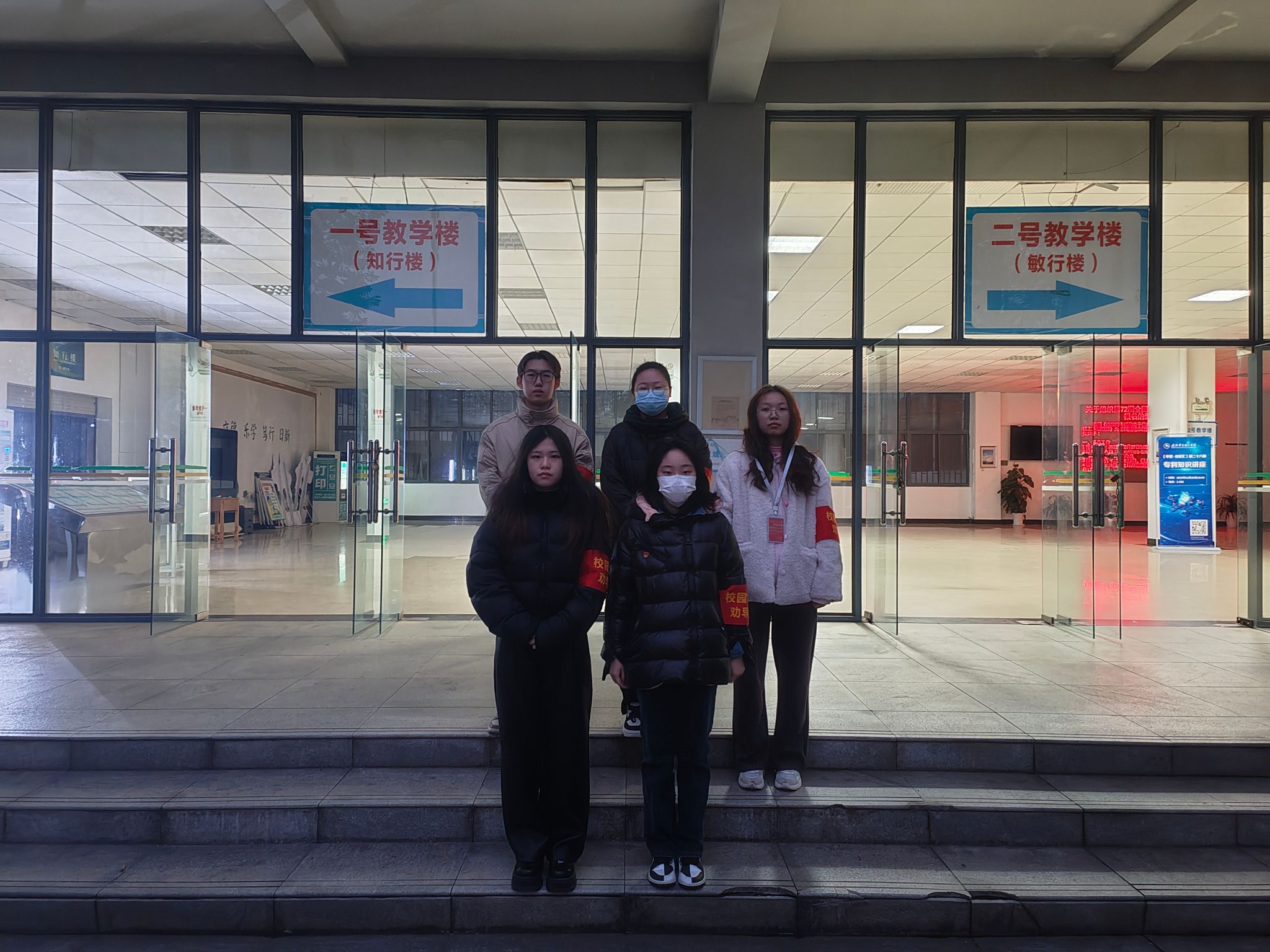 为进一步推动三风建设,营造良好的学习氛围和文明校园环境,12月26日,艺术设计与传媒学院党员服务站的成员们在教学楼开展执勤活动,做好“文明劝导员”工作。
