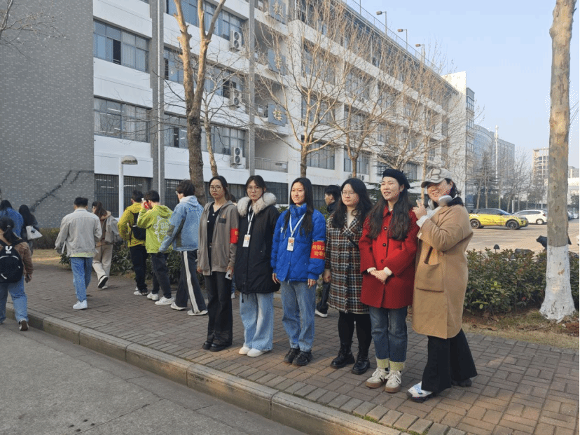 由学院党员服务站的成员组成的执勤队伍,穿着整洁地站在教学楼各个方位,负责引导教学楼附近电动车的停放、维护秩序、劝阻同学将食物带进教学楼、提醒同学们文明着装进入教学楼、协助老师和同学等工作。他们用自己的行动展现了学生的责任担当和奉献精神,为校园增添了一道亮丽的风景线。