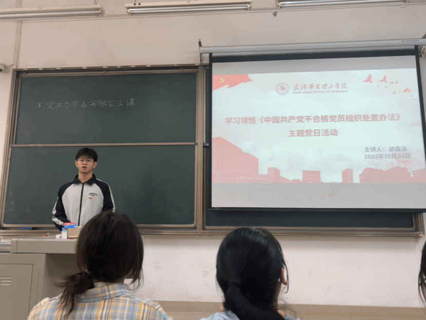在2024年10月16日这一具有深远意义的日子里,我院各学生党支部的成员们1-108教室,举行了一场以深入学习《中国共产党不合格党员组织处置办法》的理论学习研讨活动。