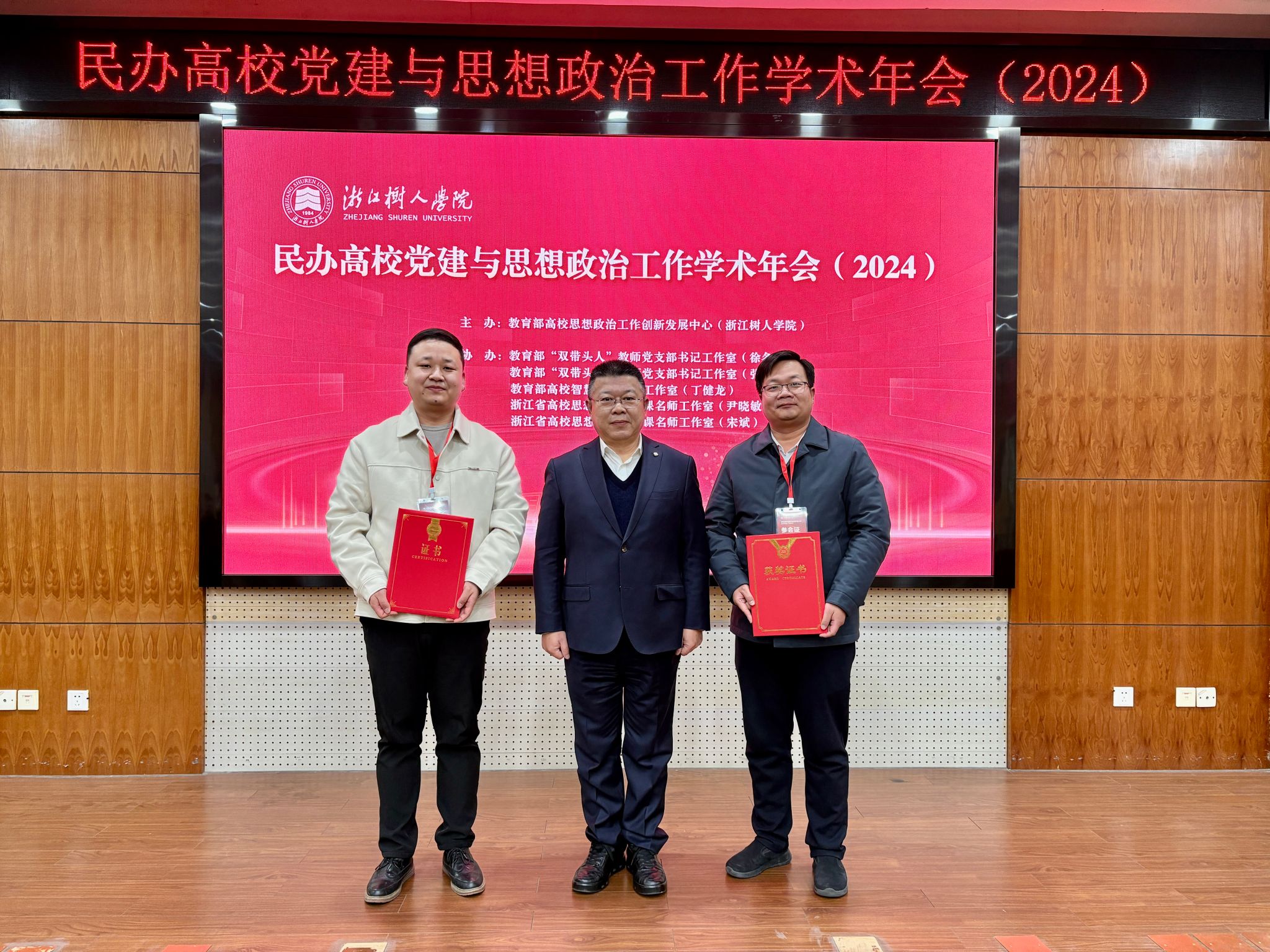 12月19日,由教育部高校思想政治工作创新发展中心(浙江树人学院)主办的民办高校党建与思想政治工作年会在杭州召开,我院张亮、黄旭龙两位老师受邀参会。