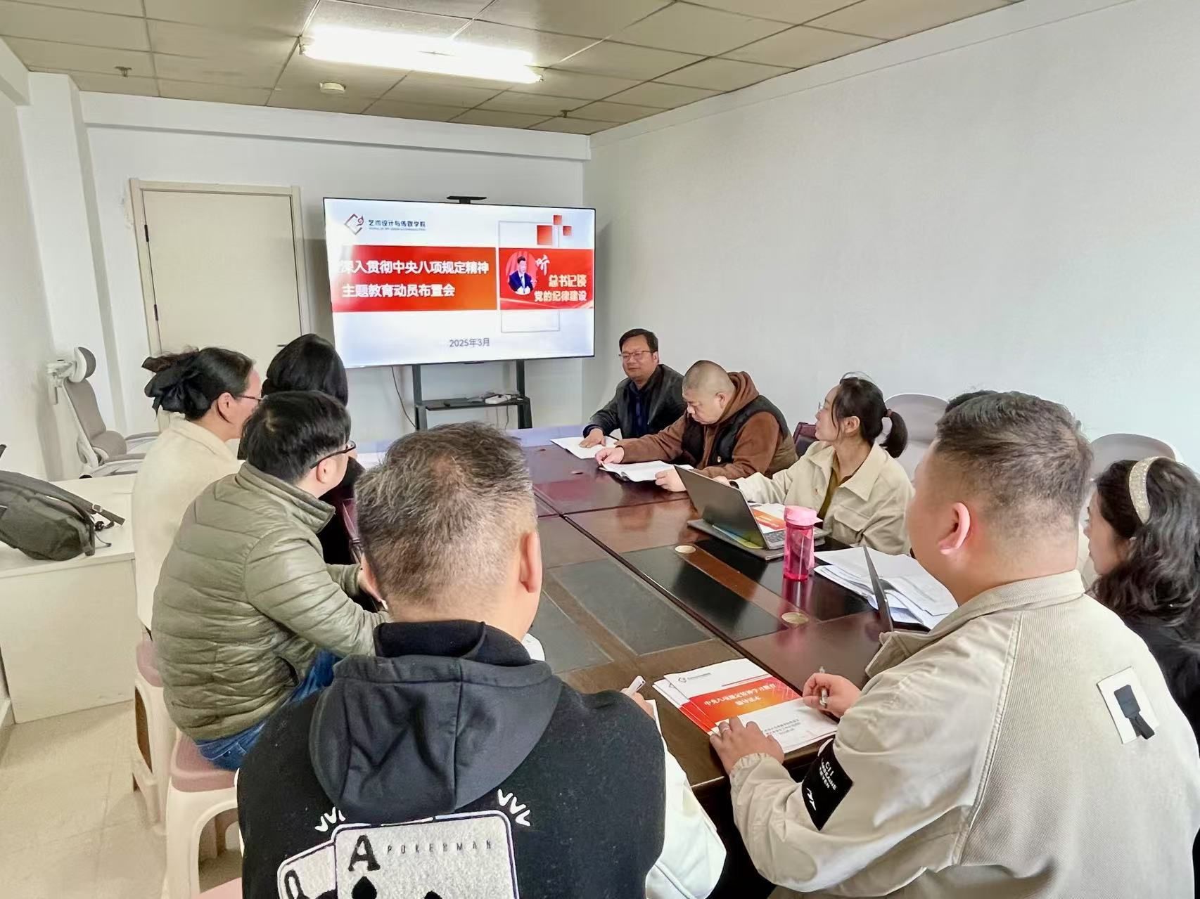 3月21日,我院党总支在综合楼1006办公室召开深入贯彻中央八项规定精神动员部署会,全体院领导、党总支委员、党支部书记参加会议,会议由张亮书记主持。
