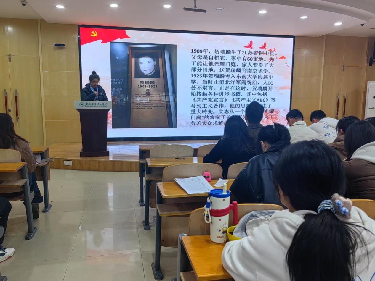第三位同学则以“贺瑞麟:红色基于代代相传”为主题,深情讲述了贺瑞麟烈士在狱中坚持写日记、记录革命斗争的英勇事迹。贺瑞麟烈士在临刑前写下的《死前日记》等八册日记,真实记录了狱中的黑暗生活和被捕人员的英勇不屈。这位同学的讲述让现场师生深刻体会到了贺瑞麟烈士对革命事业的无限忠诚和坚定信念。