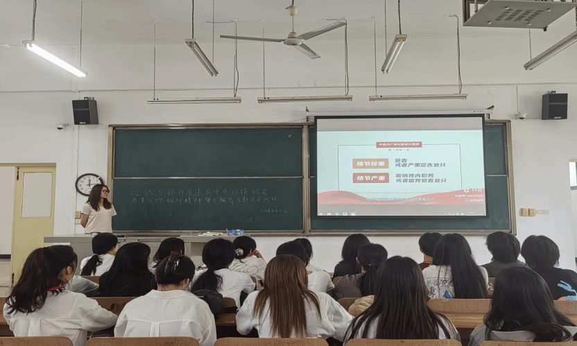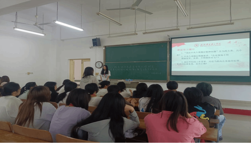 随后,魏思雨和涂圆媛两位同学依次为大家讲解了中央八项规定的相关内容及其重大意义、违反中央八项规定精神的具体表现和一系列具有警示性的典型案例。以详实的理论和真实的教训告诫同学们要严守纪律红线,筑牢思想防线。同学们聚精会神地聆听,不时认真记录,现场学习氛围浓厚。