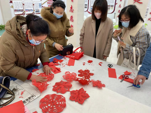 “大家在折叠的时候要注意折叠整齐…五折其实是把纸张从中心等分成十份…”杨婷婷老师边演示边讲解。1月20日,视觉传达设计系教师杨婷婷下沉社区为党员同志教授剪纸艺术的课程。