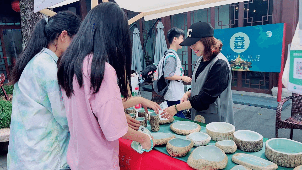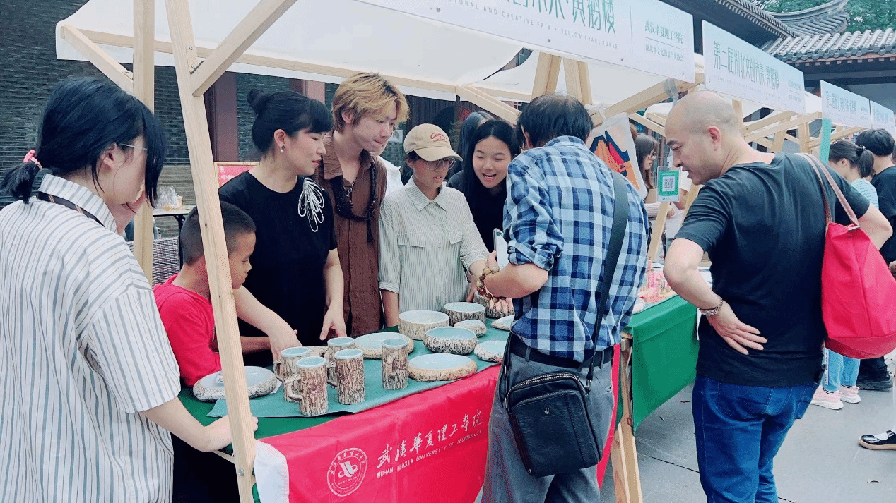 此次市集活动地点在黄鹤楼公园,为期三天,大一的小萌新们积极报名成为志愿者,和老师们一起向游客展示和介绍精美的文创产品。与此同时,手工制作的精美瓷器吸引了众多游客的驻足,文化与创意的完美结合,通过各种创意作品和文化展示,让古老的历史文化焕发出新的活力。在文创集市中,大家一同欣赏到了各大高校师生精心创作的作品,无论是艺术设计、手工艺品还是创新科技,都展示了各个领域优秀创意成果,领略当代大学生的创意风采,感受他们的独特思维、无限想象力和创新精神。