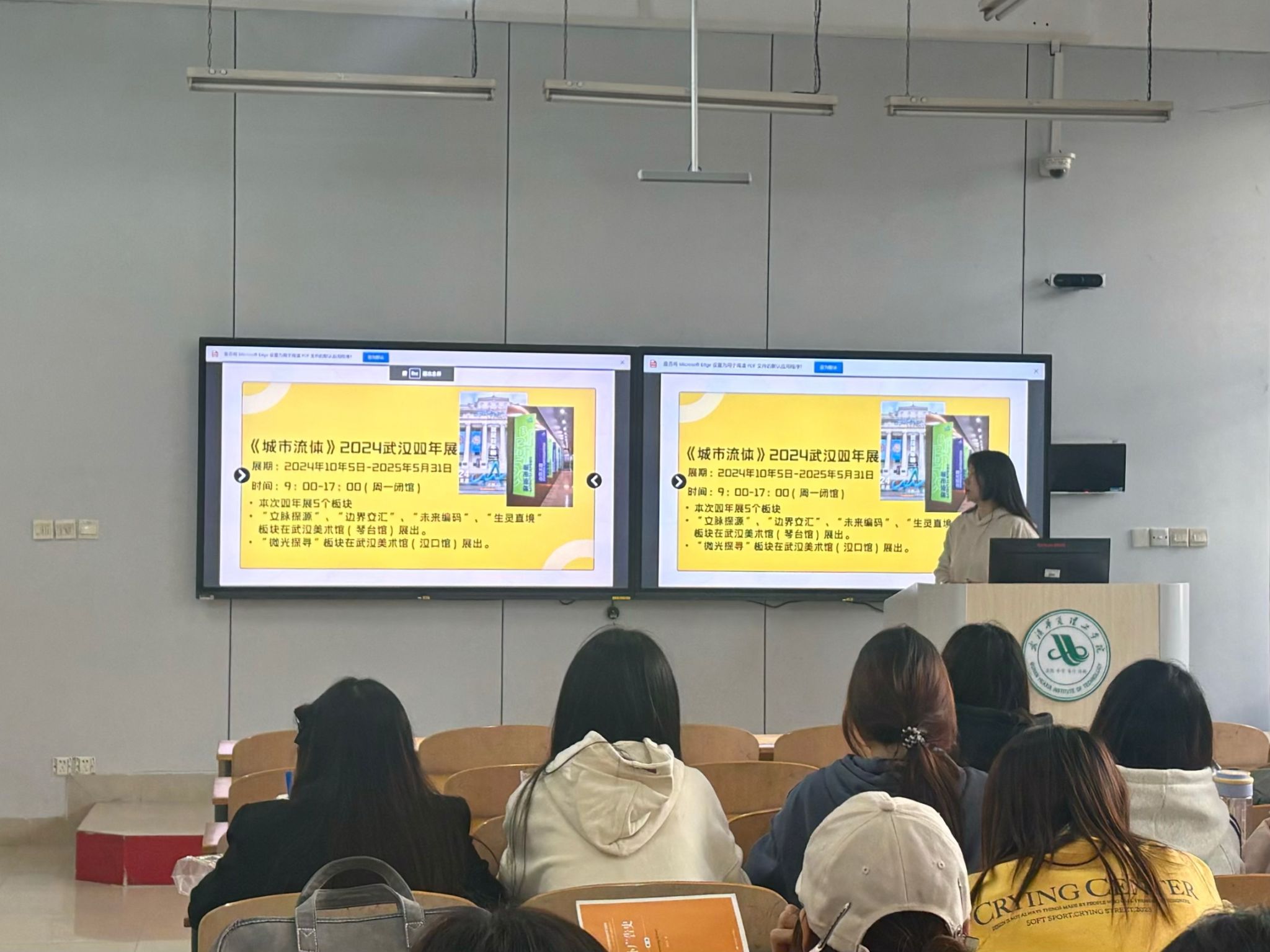 会议伊始,班主任于文婕针对艺术审美问题进行了简单论述,并强调,审美观念对于广告学专业学生有着重要作用。随后,于老师详细介绍近期武汉的一系列艺术展览,整理了相关地点、时间等资料。鼓励每一位同学都能积极主动地参观欣赏艺术展览,以促进审美能力的提升。