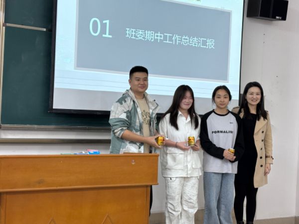 班会的第一个环节是班委期中工作总结。班长首先发言,他详细介绍了这半学期以来的主要工作。在班长的带领下,班委们齐心协力,出色地完成了综测、奖助学金认定等工作。这些工作不仅关系到同学们的切身利益,也体现了班级管理的公平公正。学习委员表示,经过几年的磨合,同学们的学习积极性有了明显提高。团支书主要负责了暑期社会实践审核、推优等工作。她强调,这些工作不仅丰富了同学们的课余生活,也提高了大家的思想政治素质。在班委们的共同努力下,广告 1221 班在各个方面都取得了显著的成绩。他们的付出得到了同学们的一致认可和好评。