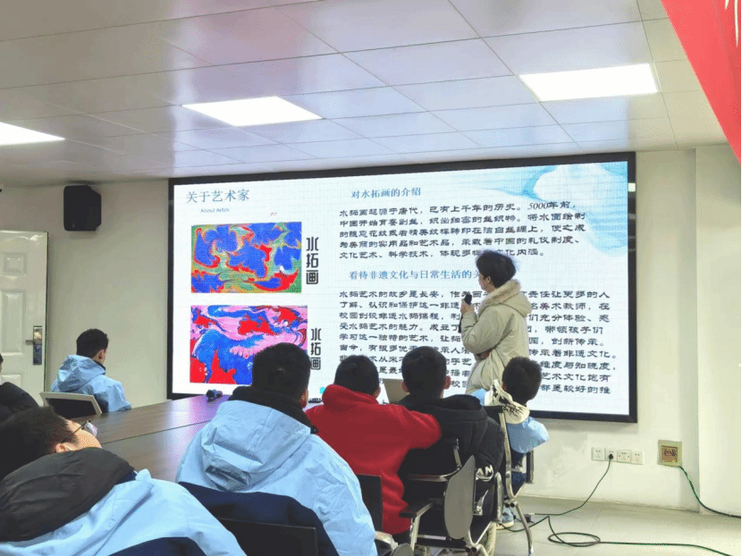 活动当天,校园内洋溢着浓厚的艺术氛围,志愿者先和同学们进行了破冰小游戏,进一步拉进了与学生之间的距离,为水拓丝巾非遗活动的进行营造了良好氛围。他们以饱满的热情和专业的技能,耐心地向同学们介绍水拓丝巾的起源与特点,并进行了非遗作品的成品展示,为同学们开启了一场视觉与心灵的双重盛宴。