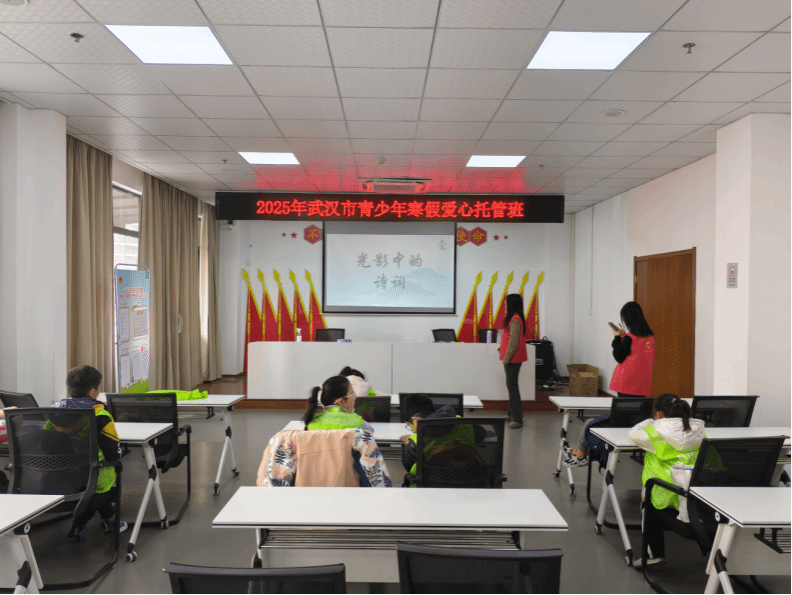 1月16日下午2点半,华中科技大学人文学院志愿者团队走进总港西岸社区,为孩子们带来了一场精彩纷呈的美育熏陶课程——《薪火典籍相承、文化“技忆”新生》。本次课堂旨在通过诗词欣赏、互动游戏和手工体验,让孩子们感受中华传统文化的魅力,激发他们对学习的热爱。