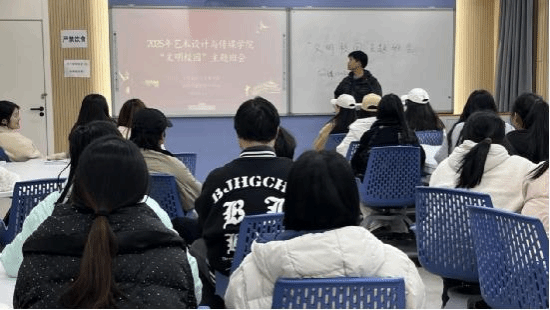 3月7日中午12:30,我院网络与新媒体1223班于214-2智慧教室中举办了一场以“文明校园,从我做起”为主题的班会活动。本次活动旨在深化同学们对文明校园建设的认知,携手共创一个更加和谐、有序的学习环境。