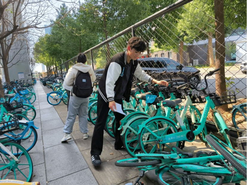 志愿者们朝着金融港北前行,路上大量违规停放在盲道上的自行车映入眼帘,部分车辆甚至直接霸占盲道中央,给视障人士出行埋下极大隐患。志愿者们迅速分工,争分夺秒投入清理工作。每一辆车都沉甸甸地考验着大家的体力,但困难并未让他们有丝毫退缩。两个多小时里,志愿者们咬牙坚持,汗水不断从额头滑落,衣衫早已被汗水浸透。终于,原本堵塞的盲道恢复畅通,看着这条重新能够安全护送视障人士出行的通道,志愿者们满是疲惫的脸上露出欣慰笑容,那笑容里,是付出后的满足,是奉献带来的自豪 。