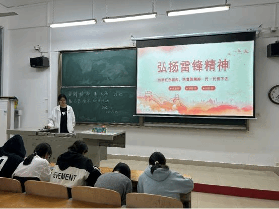在班会开始团支书高泠以“雷锋是谁?雷锋精神是什么?”为切入点,通过图文并茂的PPT带领同学们回顾了雷锋同志的生平事迹。从苦难童年到光荣入伍,从“螺丝钉精神”到“为人民服务的誓言”,一张张珍贵的历史照片、一段段感人的日记摘录,生动展现了雷锋平凡而伟大的一生。