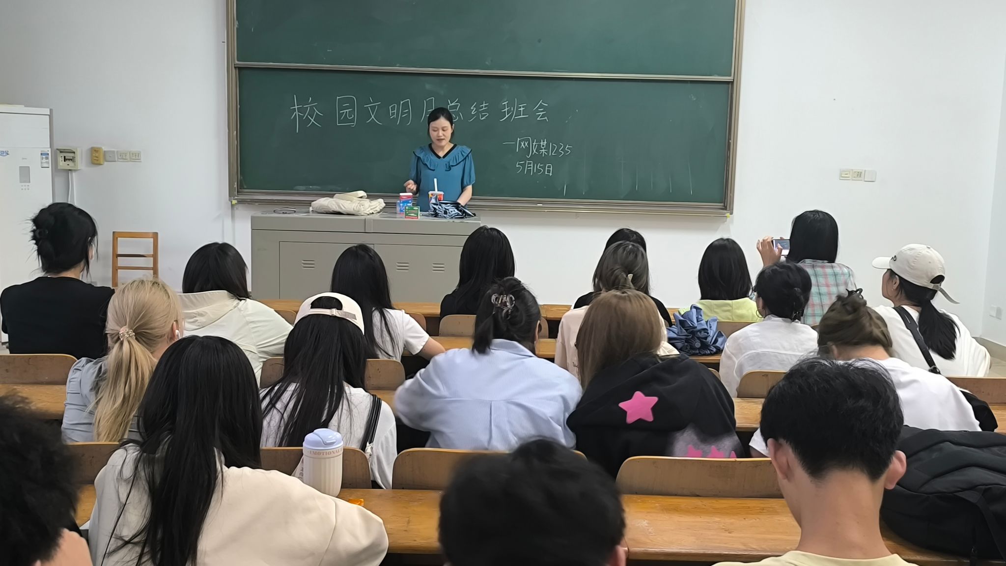 5月15日,网络与新媒体1235班召开“文明校园建设月”总结班会,班主任唐依老师全程参与并作总结发言。班会以“文明校园,从我做起”为主题,全面回顾班级在文明月期间推行的早自习监督岗制度成果,并围绕校园文明建设展开深入讨论,师生共绘班级发展蓝图。