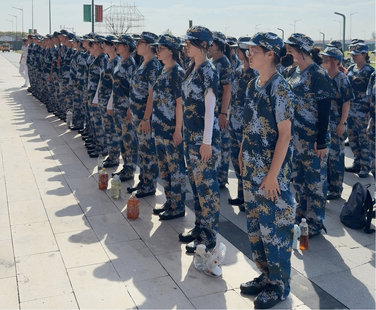 烈日当空,口号震天。“稍息!立正!齐步走!”五营十连二排李海龙教官的指令铿锵有力。这位曾服役于海军部队的教官,将军人作风融入训练,从站军姿时“脚跟并拢、膝盖后压”的细节,到正步走时“摆臂定型、步幅精准”的高标准,他始终以“严中有爱”的态度陪伴学生成长。休息间隙,他化身“知心哥哥”,用幽默的语言缓解训练压力,更以自身经历激励学生:“军训不仅是身体的锻炼,更是意志的磨砺!”