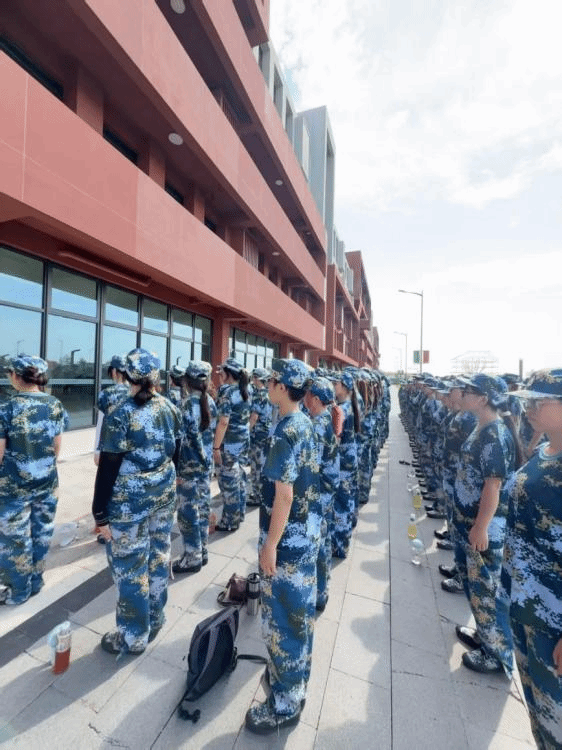 训练场上,五营十连新生们的身影尽显青春担当。每日清晨六点十分,嘹亮的哨声划破校园宁静,五营十连新生们迅速集结、整理着装,开启一天的训练。站军姿时,他们纹丝不动,任凭阳光炙烤、汗水浸透衣衫,眼神始终坚定;练转体时,“向左转”“向右转”的口令清晰有力,整齐的转身动作、清脆的靠脚声,展现出高度的纪律性;走分列式时,为追求步伐统一,新生们利用休息时间反复练习,调整步幅、校准节奏,直到整个连队走出“一条线”的整齐效果。“一条线,一条心”艰苦卓绝的训练,不仅锻炼了五营十连新生们艰苦奋斗的意志,也将来自五湖四海的新生们的心凝聚到一处。休息间隙,各连队的互动同样精彩,拉歌比赛中,《强军战歌》《歌唱祖国》的旋律响彻校园,挥洒汗水间,陌生的同学逐渐熟悉,集体凝聚力悄然增强。