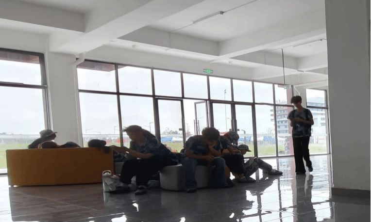 训练场上,他们是整齐划一的“迷彩方阵”,口号响亮、步伐铿锵;训练间隙,大厅便成了他们短暂放松的小天地。有的同学靠着墙壁小憩,缓解训练的疲惫;有的三两结伴,低声交流着训练心得与大学初体验;还有的拿出手机,或许是给家人报个平安,或许是记录下这独一无二的军训时光。一身身迷彩服,在简约的白色楼梯间里格外鲜明,那是青春的色彩,更是他们磨砺意志的见证。