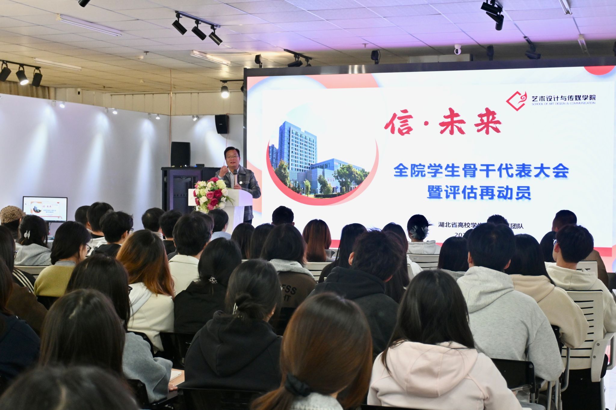 10月22日,艺术设计与传媒学院“信·未来”全院学生骨干代表大会暨评估再动员部署会在艺术馆三楼会议室顺利召开。院领导张亮书记作动员讲话,学院全体辅导员、学生干部代表共同参会。