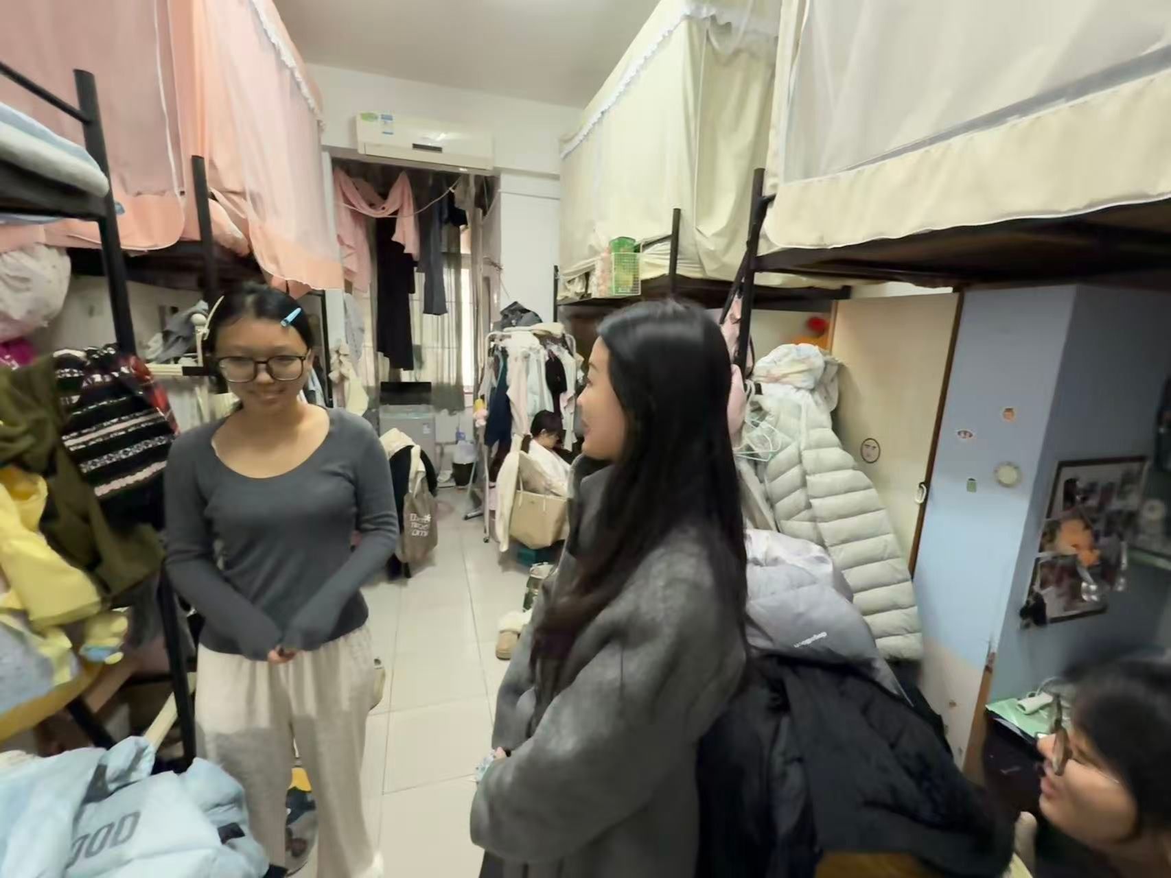 为确保学生住宿环境的整洁与安全,提升学生宿舍管理质量,12月4日,数字媒体艺术1244班班导熊梦真老师对班级学生进行查寝工作。本次查寝旨在检查宿舍卫生情况、生活设施设备的完好程度及学生的生活习惯,确保学生在良好的环境中学习和生活。