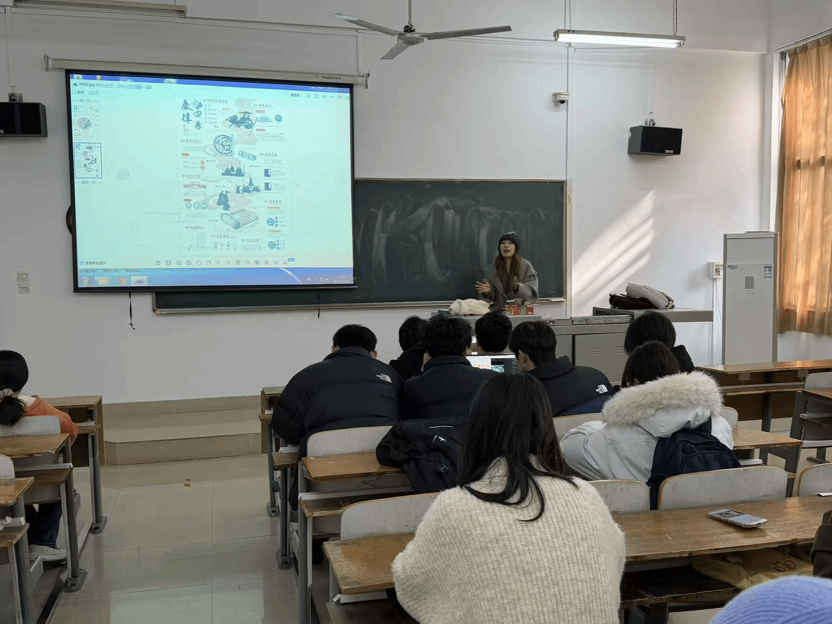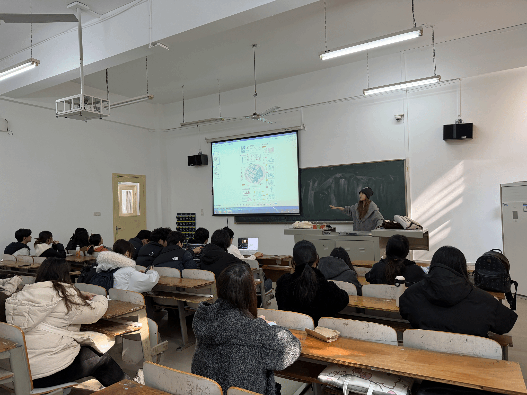 在作品展示与分析环节,李老师通过PPT逐一向同学们讲解作品的创意来源、主题表达、视觉呈现技巧及获奖亮点。从不同主题设计的情感共鸣设计,再到新媒体视觉作品的创新表达,每一幅作品都让同学们深受启发。“这幅作品的色彩搭配既符合品牌调性,又具有强烈的视觉冲击力,关键在于创作者对色彩理论的熟练运用和市场需求的精准把握。”李老师的细致解读,让同学们不仅学到了创作技巧,更理解了“赛事作品不是孤芳自赏,而是要兼顾创意与实用性”的核心逻辑。同时,她还分享了赛事报名、作品打磨的实用经验,鼓励同学们组建团队、分工协作,在赛事中相互学习、共同进步。