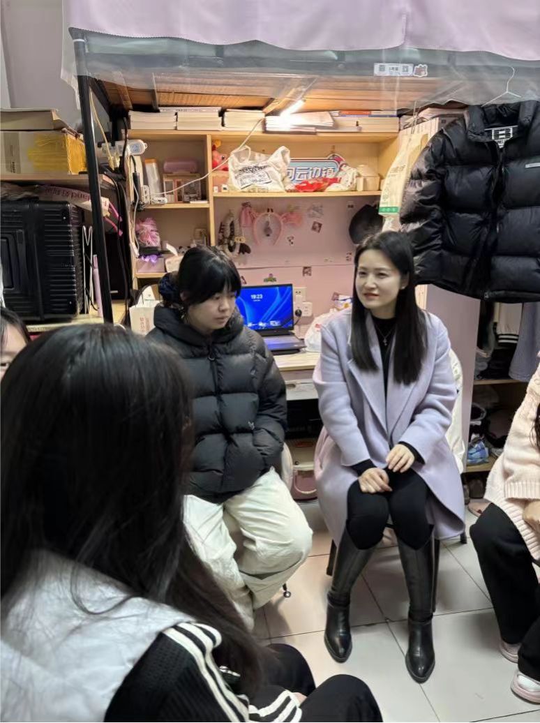 查寝过程中,班主任逐一查看寝室环境,细致询问同学们的住宿生活情况,从作息安排到饮食起居,点滴细节皆关怀备至。随后,交流重点聚焦于同学们的实习进展,班主任耐心倾听每位同学的实习经历分享——有人谈及在广告公司参与文案策划、客户对接的实操收获,有人讲述实习中遇到的沟通难题与解决心得,也有人提出对职业方向的迷茫与困惑。