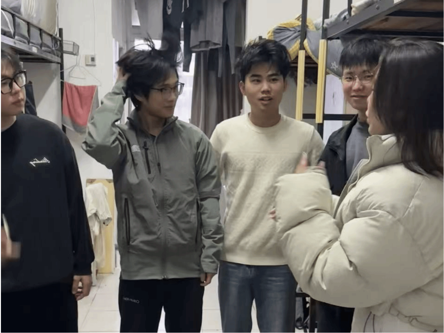 在排查过程中,李宸老师与学生亲切交谈,了解学习压力与生活需求。她结合专业特点,鼓励学生合理规划复习时间,注意劳逸结合,遇到困难及时向导师或学校心理中心求助,并分享了冬季减压和保持良好作息的小技巧。“老师不仅关心我们的安全,还询问我们的复习进度和心理状态,感觉很温暖。”1245班学生说道。