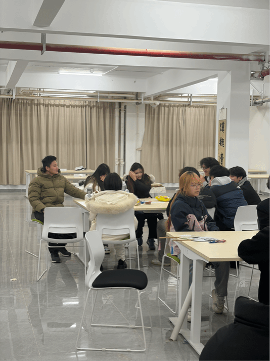 为进一步强化班级建设、提升班干部履职能力,搭建师生、同学间的高效互动桥梁,12月16日20点20分,数媒1251-1255班与网媒1253-1254班于4-101活动室召开第二次全体班干部“茶话会”。辅导员王红桔与全体班干部齐聚一堂,以“茶话会”为载体,围绕“学习”“师生关系”“生活”三大核心维度深入交流,明确后续工作方向,为班级发展凝聚共识。
