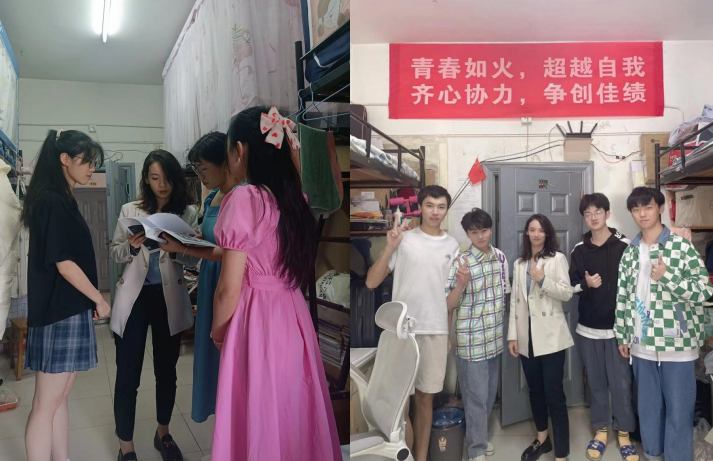现阶段即将进入期末考试,搞好学风建设工作刻不容缓,开展学风学纪督查工作势在必行。环境设计1201班同学平时学习基础较好,在寝室也有较好的学习习惯,学习氛围浓厚。例如女生的3B509寝室,经常在寝室长的带领下,开始课外学习。1A420寝室,更是营造了非常好的学习环境,挂起了“青春如火,超越自我,齐心协力,争创佳绩”的条幅,来激励全寝室同学追求进步。同学们自我打造良好学风、培养自驱力等行为,受到导师班主任的大力表扬,并激励其他同学也向这两个优秀的标杆寝室学习。
