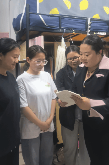 刘静主任以及各辅导员进入寝室,了解各寝室的“公寓文化”建设以及参与活动情况。众多寝室积极响应,寝室长带领各自寝室成员根据自己寝室内部特色布置专属于自己的寝室文化,拍摄照片、视频,方式多种多样。同时,各辅导员还依次检查寝室内务问题,众多寝室都表现优异,对少部分表现欠佳寝室提出了今后寝室内务卫生的不足之处以及改正方式,希望在之后的寝室内务中能积极整改,共建干净、和谐、美好寝室。最后,各辅导员还与学生深入交流,对学生近期的寝室生活做了深入调查,了解学生寝室生活的需求以及寝室在今后的建设中仍需要改进的地方,了解需求、解决需求。