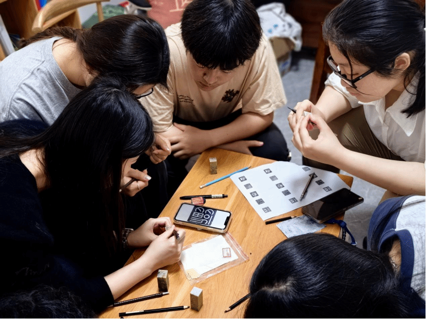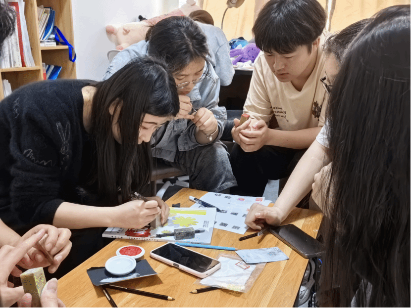最后,焦洁老师会把大家作品的不足之处指出,同学们也及时完善。同时雕琢过程中,同学们体验到了篆刻的意义,篆刻是一门历史悠久的传统艺术,通过刻刀在石印上留下独特的痕迹,传承着千年的文化与情感。
