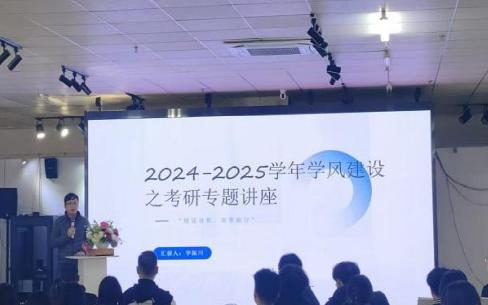2024年11月17日晚上6:30,在艺术馆三楼,我院组织开展了2024-2025学年学风建设系列活动活动。本次活动特别邀请了24届优秀毕业生李振川进行主题为“研途有你,筑梦前行”的考研专题讲座。院学工办主任刘静,团总支副书记高子涵、李雪滢,辅导员马祁、柳景祥等老师共同参加了本次活动。