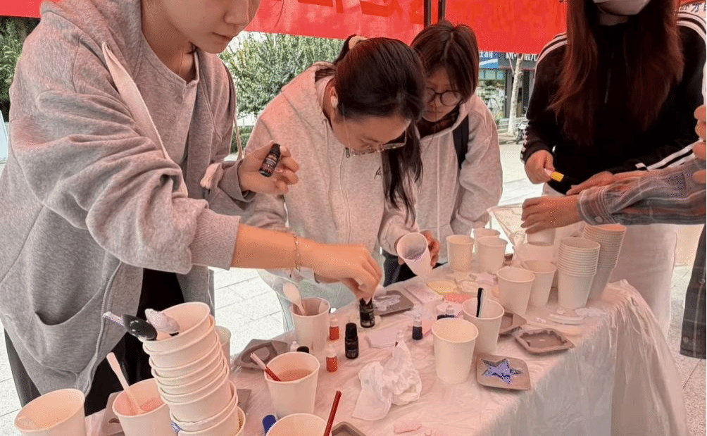 香薰拓片体验区则上演了传统香道与现代生活美学的巧妙碰撞。在刘雪颖老师的指导下,同学们亲手制作片片凝聚自然香气与个人创意的香薰拓片,体会到如何将无形的香气固化为可观赏、可佩戴的艺术品,展现了非遗技艺与现代生活的完美融合。