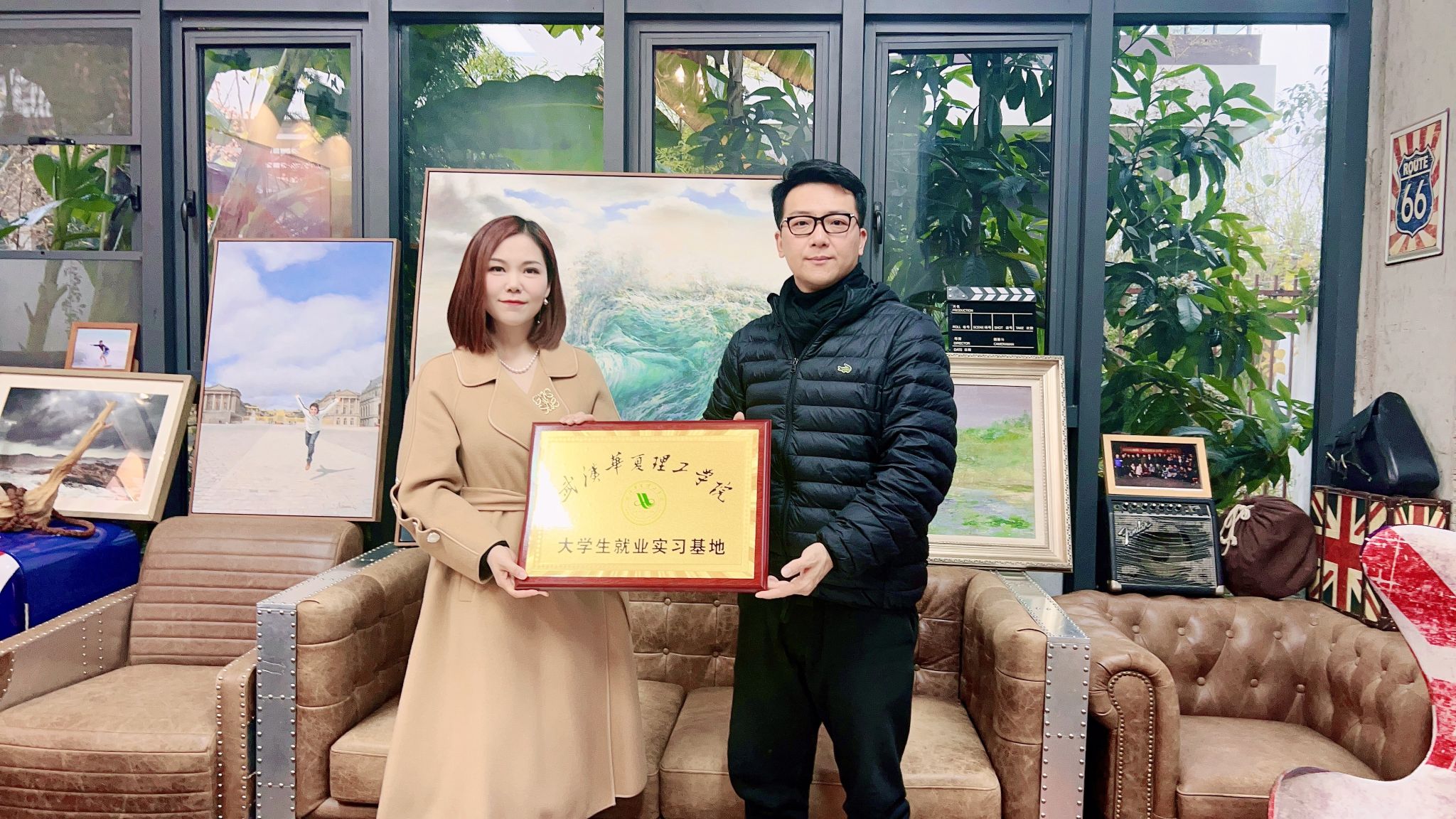 交流座谈后,李娇院长和威万文化集团董事长郭亮进行了“大学生就业实习基地”签约和授牌仪。校企双方将本着合作共赢、共同发展、协同育人的原则,更好地将企业资源与学校资源相结合并运用到专业人才培养中来。