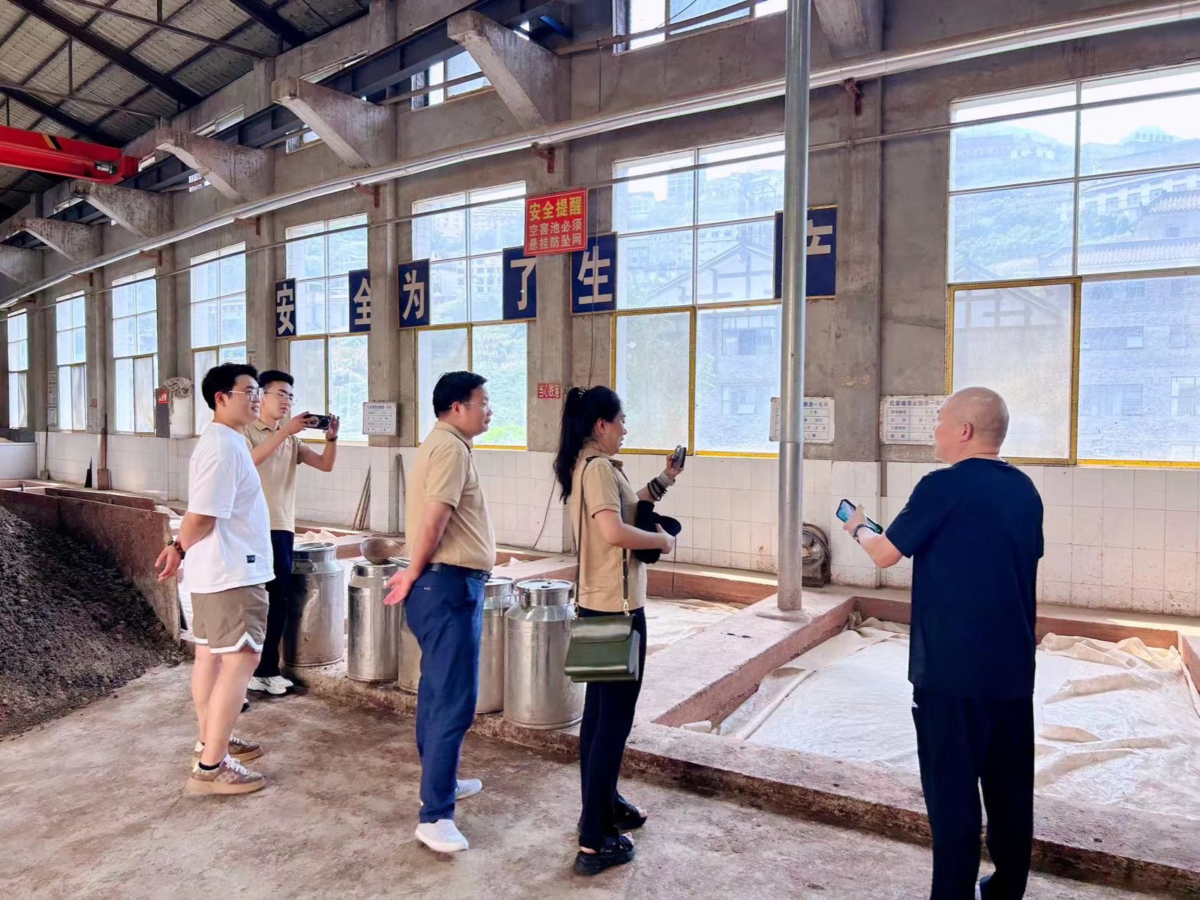 在7月26日上午,仁怀元禾艺术装饰设计有限公司董事长刘宗泰亲切接待了我院一行,并陪同参观了茅台镇红梁魂酒业有限公司的文化展厅、酿造工坊等地,而后在该公司会议室与副总经理杨彬展开座谈。杨彬介绍,红粱魂酒业成立于2000年4月,位于“中国酒都”贵州仁怀市茅台镇,占地面积100余亩;公司职工300余人,拥有5个大曲酱香型白酒酿造车间,2个自动化包装车间和舒适的办公环境。