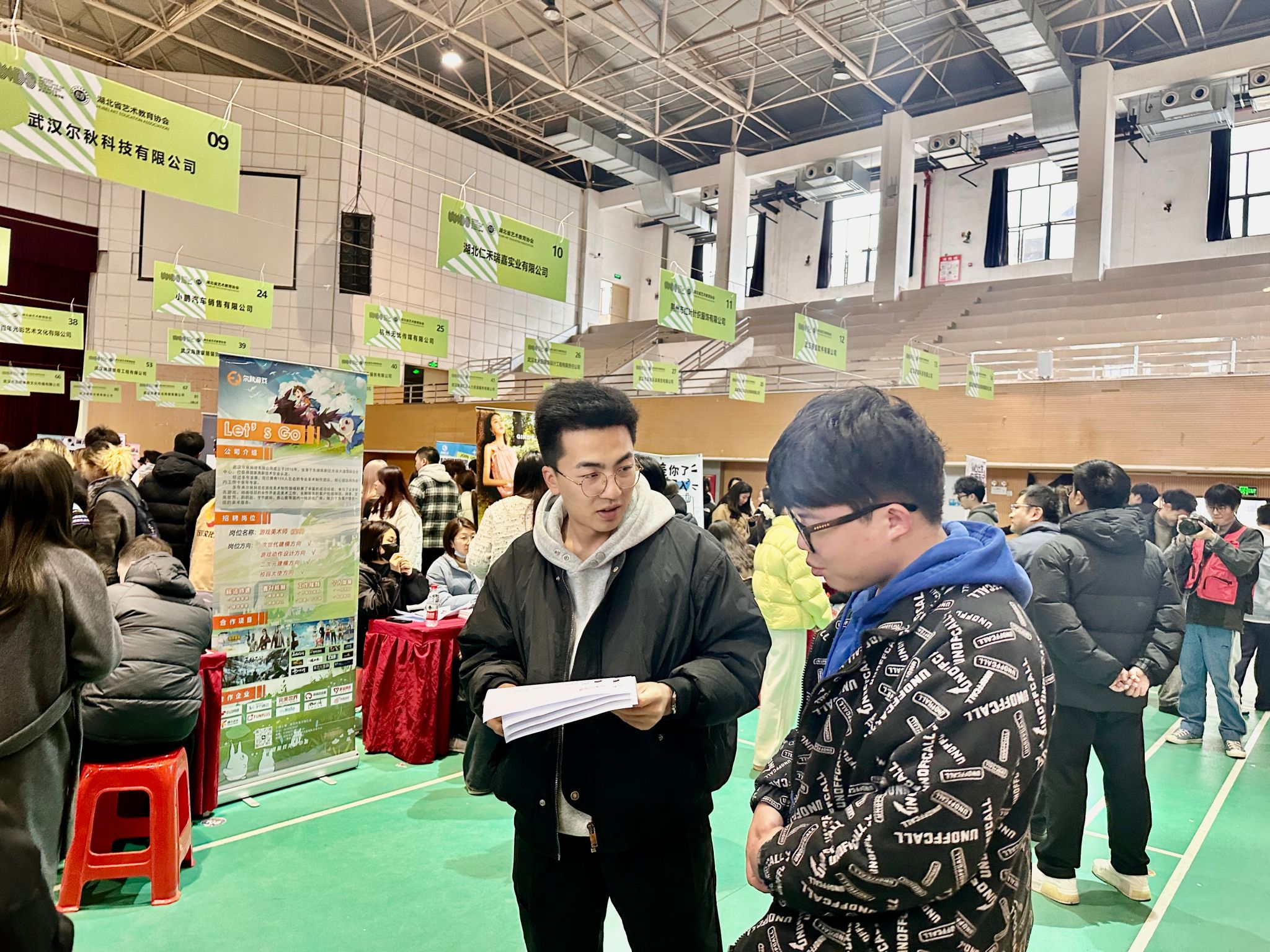 在招聘会上,同学们自信满满,携带简历、作品集与用人单位进行了深入交流,成功争取到了面试机会,朱至立、韩宏达两位老师也积极向企业推荐我院毕业生,详细介绍学生的专业背景、综合素质和实习经历,为学生们争取更多的就业机会。