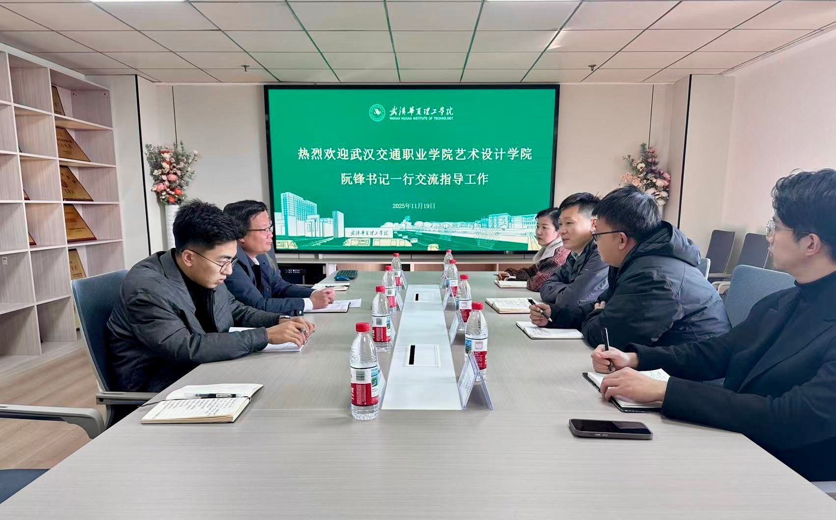 11月19日,武汉交通职业学院艺术设计学院党总支书记阮峰一行到我院进行走访交流。院领导张亮热情接待来访一行。双方围绕就业指导、学生工作品牌创新等议题进行了深入探讨与交流,现场气氛热烈友好。
