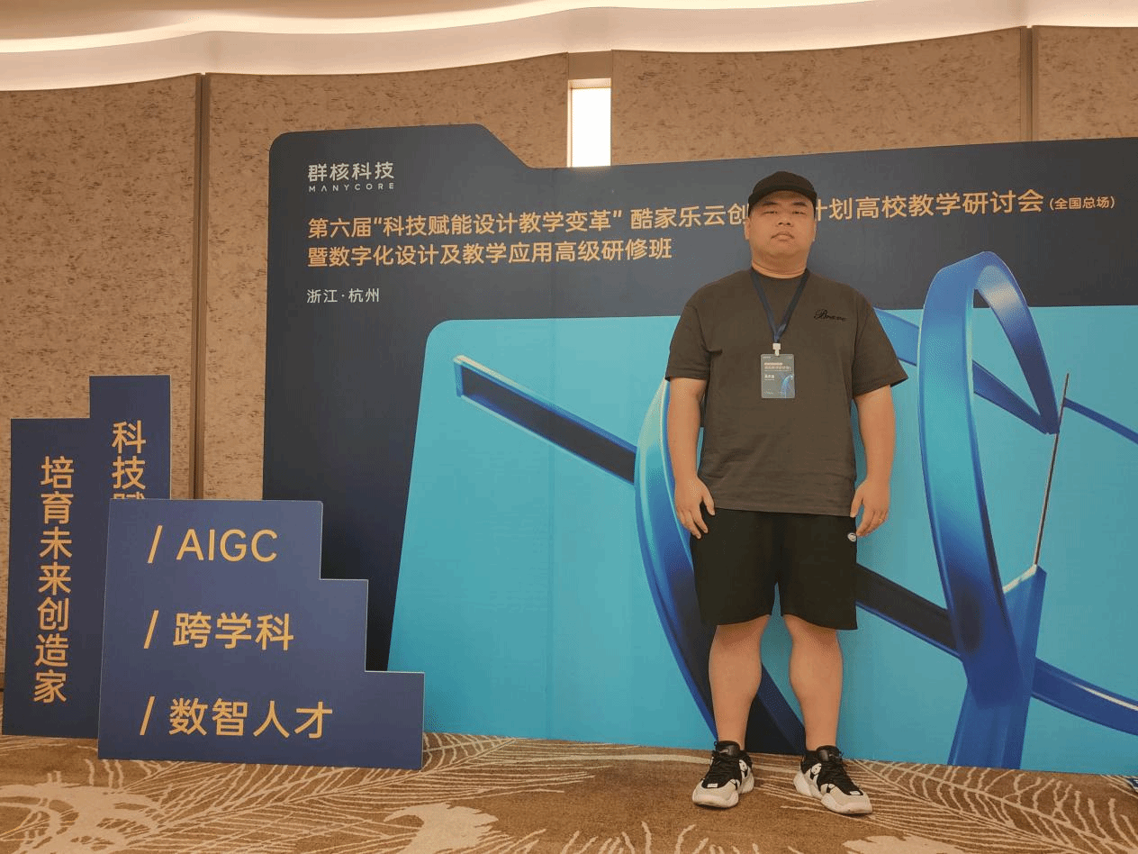 2023年7月底,艺术设计与传媒学院环境设计系专业教师吴天呈在暑期赴杭州第六届“科技赋能设计教学变革”酷家乐云创校园计划高校教学研讨会。本次会议在中国教育发展战略学会产教融合专业委员会的指导下,由杭州群核信息技术有限公司(酷家乐)、景德镇陶瓷大学设计艺术学院、顺德职业技术学院设计学院联合主办。
