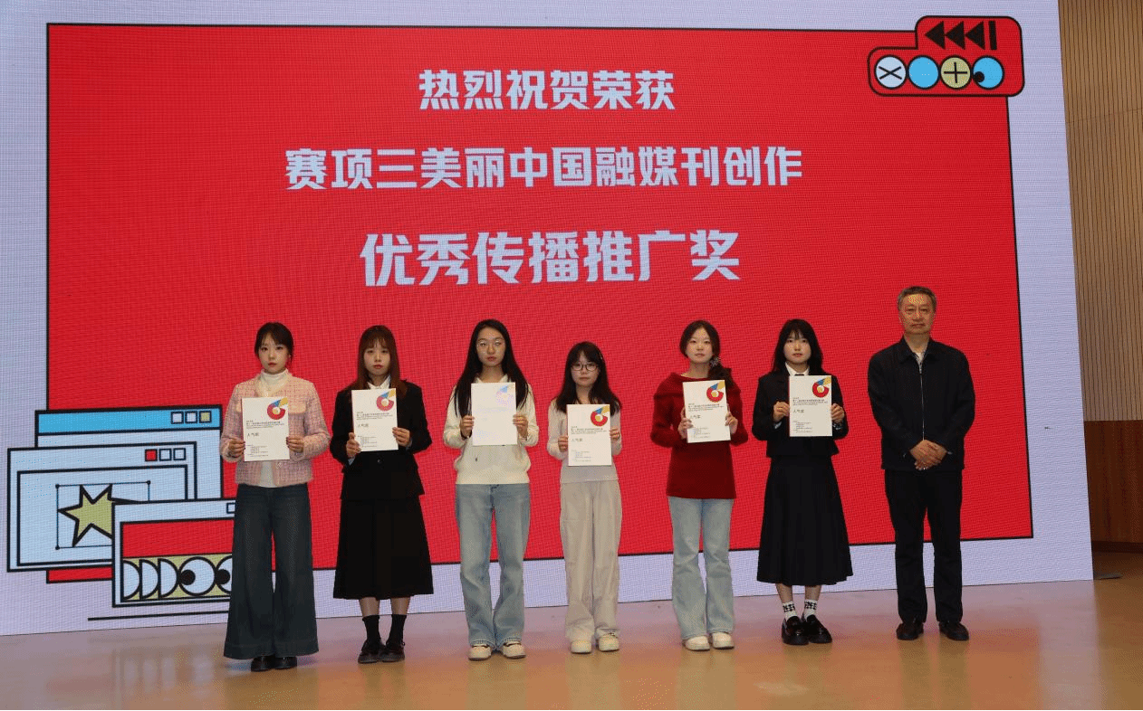 网媒1227班周维为和兰艺馨同学创作的《美丽中国——诗画江南·活力浙江》荣获美丽中国融媒刊创作优秀传播人气一等奖。该作品以独特视角和创新表现形式,生动展现江南地区的美丽风光与浙江的活力发展,赢得评委高度认可。谭国伟、陈耀同学的作品《变法风云:王安石的改革之路》获得强交互H5作品创作优秀出版物导读主题三等奖。杨乐行、罗壹嘉同学的作品《江安竹簧》获赛项一强交互H5作品创作人气作品优秀奖。网媒1225班的江锦好、文隆瑾、华潇潇、汪雨薇四位同学的作品《我的青春故事》获得大学生领读人一等奖。在颁奖典礼现场,周维为同学作为优秀获奖代表,向大家分享了自己的创作心得。