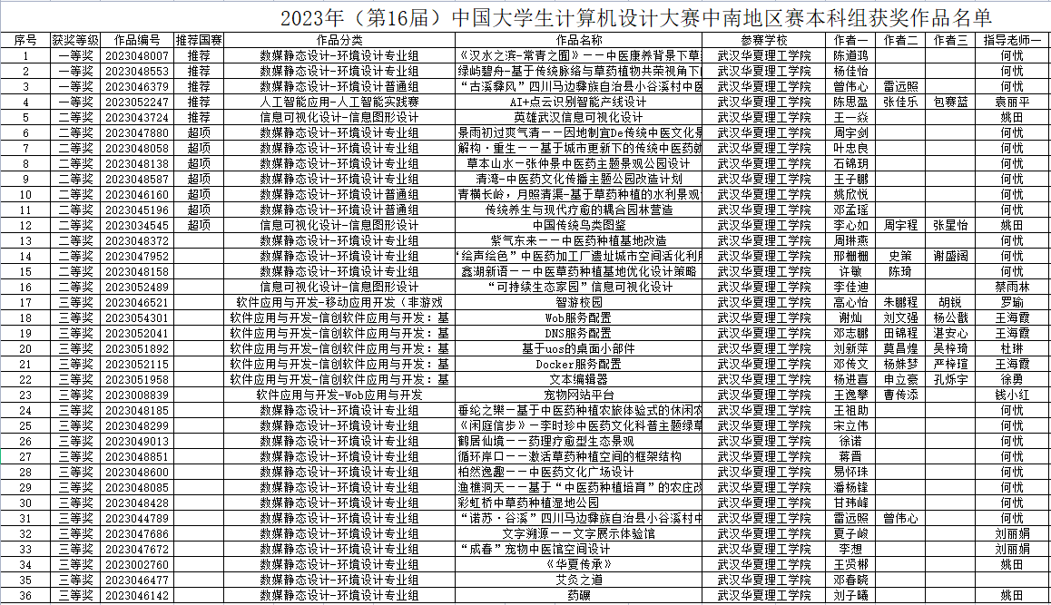 2023年5月29日,beat365参与的“2023年(第16届)中国计算机设计大赛”命题赛道及非命题赛道湖北赛区省赛评审工作已经全部结束,学校此次比赛中表现优异,共荣获36项大奖。其中荣获湖北省赛区省级一等奖4项,二等奖12项,三等奖19项。推荐国赛5项!