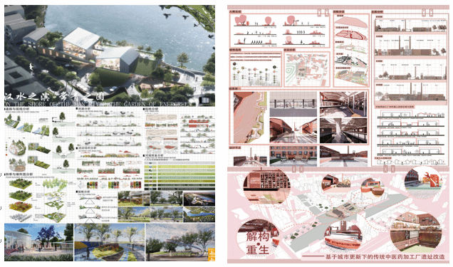 从2022年7月赛事启动到今天,师生付出了艰苦努力。他们凭借自己优秀才干和扎实的专业水平,在数万件作品中脱颖而出。在命题赛道湖北赛区中,一等奖作品《汉水之滨-常青之囿》——中医康养背景下草药植物园艺疗养设计策略(作者:陈道鸿,指导老师:何忧)的设计理念为在健康中国导向下,打造草药植物园艺疗养的设计策略。二等奖作品《解构·重生——基于城市更新下的传统中医药加工厂改造》(作者:叶忠良,指导老师:何忧),本项目是传统中医药加工厂遗址改造再设计,将中医药文化结合加工厂生产元素与工业建筑相结合,再尽可能保留原有传统中医药加工厂建筑风格的基础上延伸加工厂遗址工业风格并且对中医药加工厂及其周围区域进行改造重生和设计。
