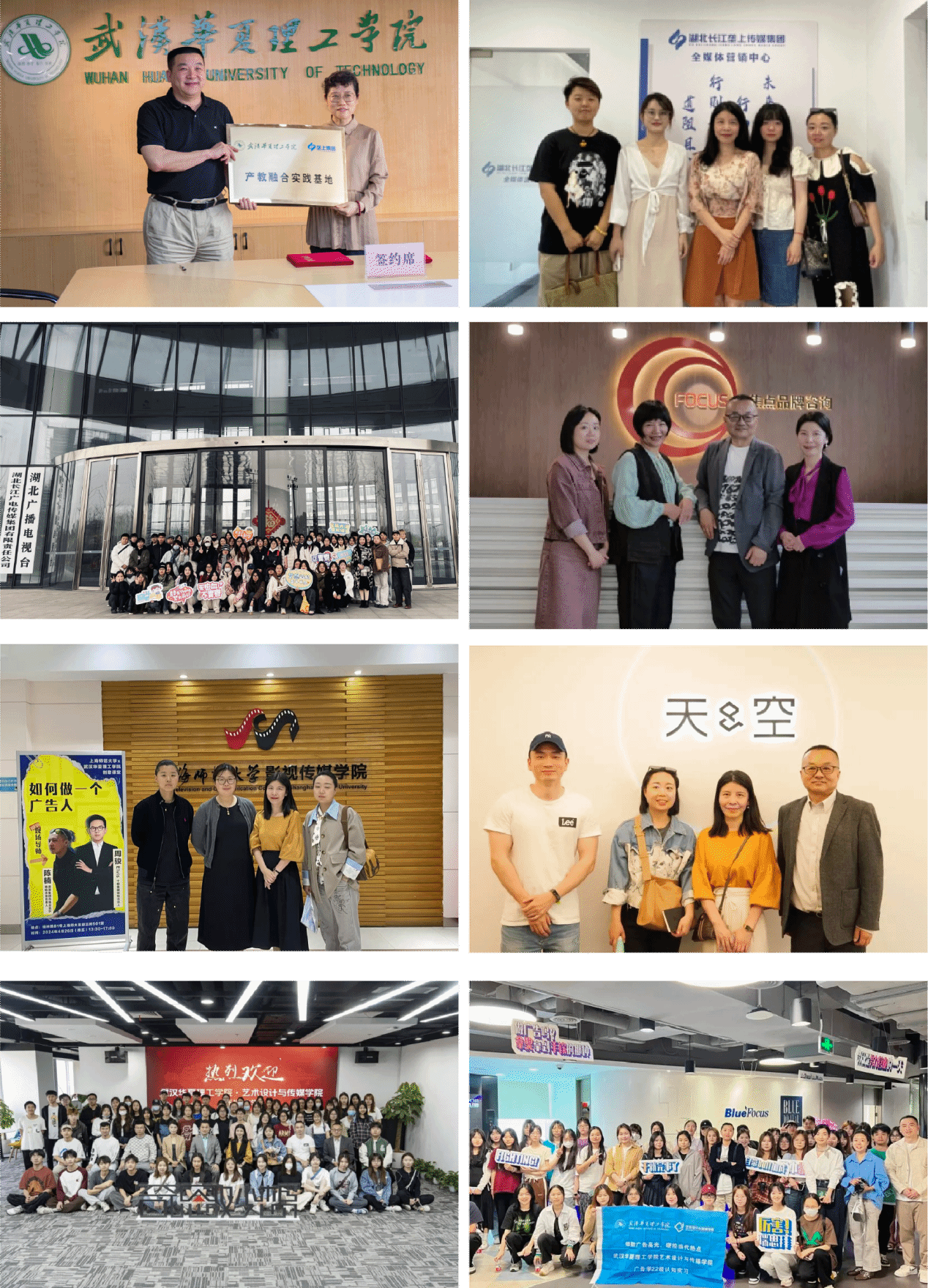 区域战略合作伙伴:与上海奇思妙想、黑芒、天与空、矩阵互动、映盛互动等头部企业建立深度协同机制,拓展前沿行业视野;依托知音传媒集团、湖北垄上传媒集团等武汉本土龙头企业,持续为毕业生搭建实习直通渠道。