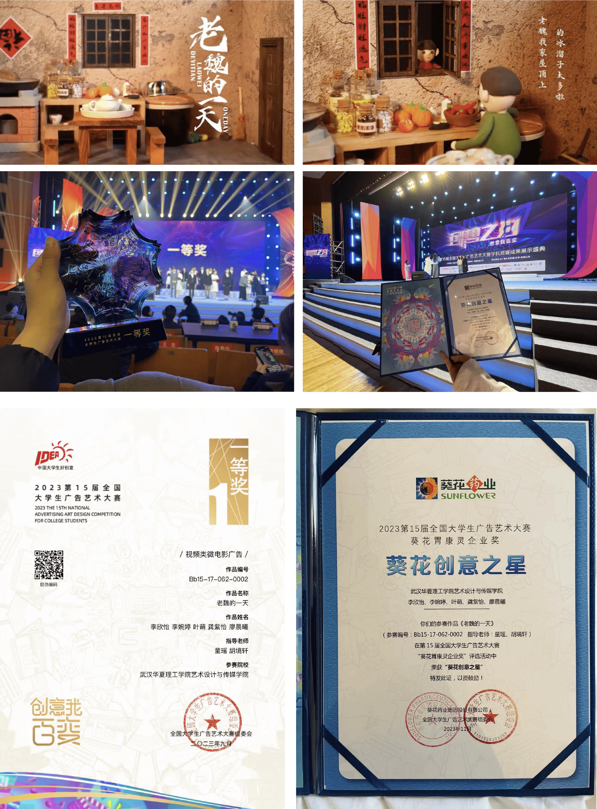 第十五届全国大学生广告艺术大赛 国家级一等奖、省级一等奖、企业一等奖