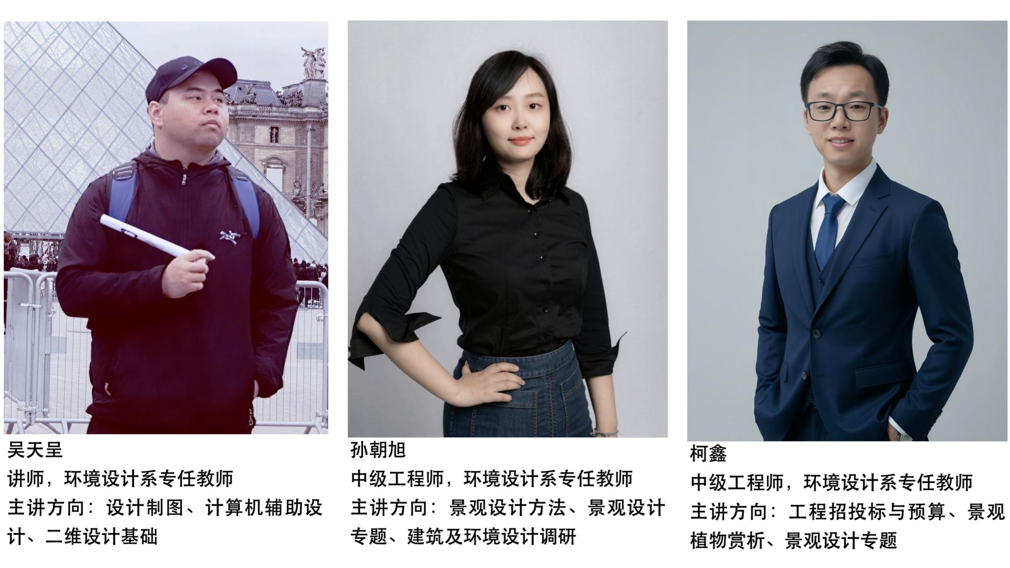 【普通本科】居住空间设计、景观设计方法、商业空间设计、公共空间景观设计、公共空间设计、室内设计原理、识图与制图、设计表现技法等。