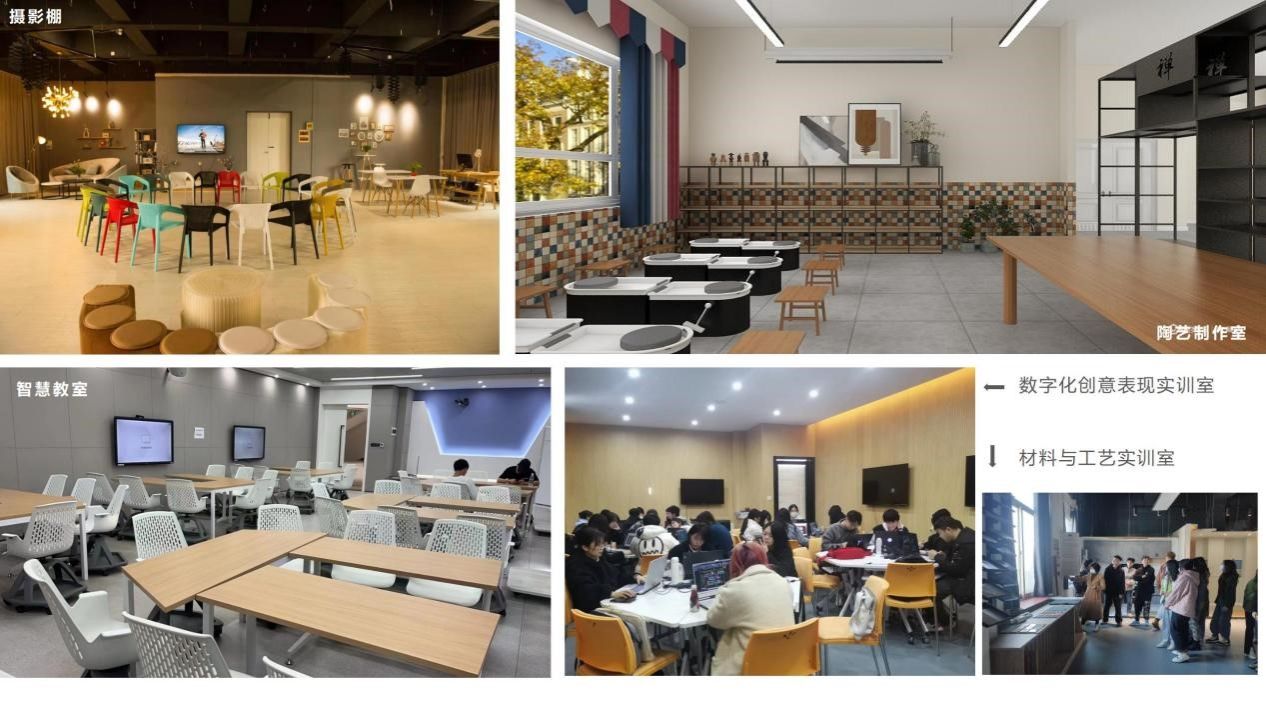 校内实践教学基地:1957设计中心、大学生创业中心、环境设计实训室、VR虚拟现实实训室等。