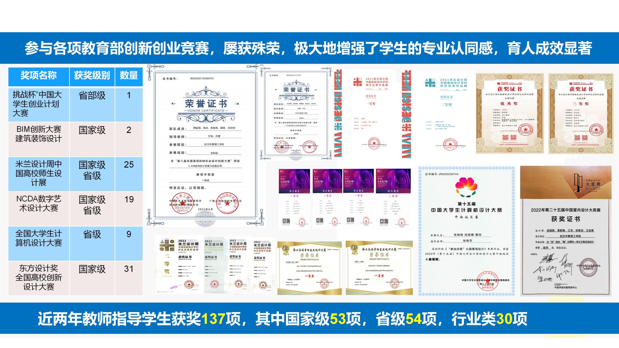 环境设计专业一方面在教学过程中将竞赛引入室内设计、景观设计等课程教学中,另一方面由教师指导1957设计中心学生在课外参与各类竞赛。竞赛既有利于学生主动学习、积极创新,又可激发学生对专业的热爱,对教学有着非常积极的促进意义。