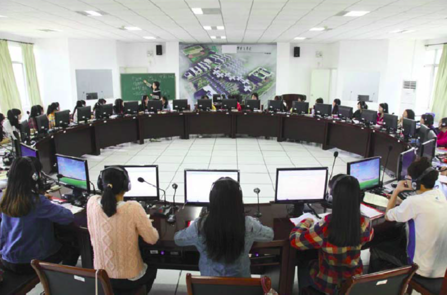 The laboratory of Foreign Language School contains the Simultaneous Interpretation Room, Huaxia Translation Workshop, Language Lab and Phonetics Lab, the latter two covering an area of 1,200 square meters. Equipped with language broadcasting teaching system, autonomous English learning network platform, audio &video-on-demand system, English online library, New Horizon online learning system and Langoo academic network platform and so on, the lab undertakes a series of professional and experimental courses both for English majors and non-English majors.
