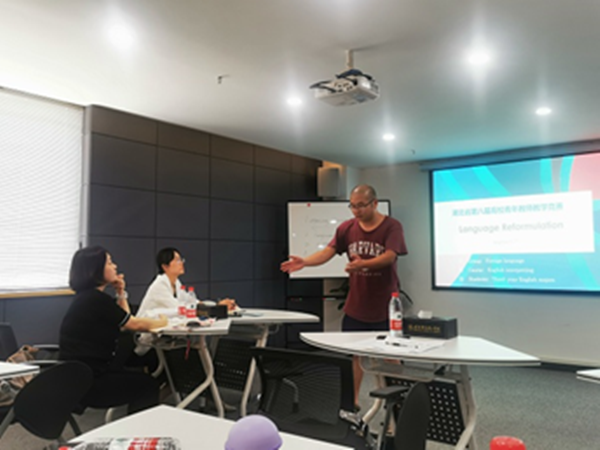 In order to achieve good results in the provincial competition, on July 2, the school leaders invited Dr. Lv Peng, the first prize winner of the science group of the 7th Hubei Provincial College Young Teachers' Teaching Competition, to the school to share his experience in the College Young Teachers' Teaching Competition.